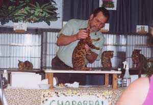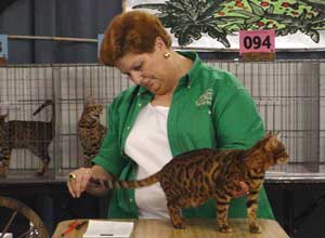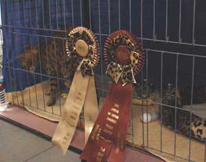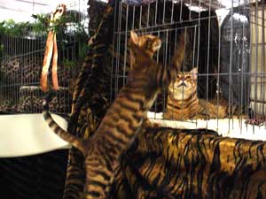 "ON SAFARI Bengal Congress"は全部で3リング。プリズマはファイナルを2個もゲットしました!!のこみちゃんはというと・・・ジャッジにだいぶ悩んで貰ったのですがファイナルインならずでした。ベンガルのキツンだけで六十数頭出陳してました。ベンガルのアダルトはというと四十頭弱でした。日本とは比べモノにならないくらいベンガルが出陳してて感激でしたぁ〜♪ 午後3時からのショーだったので、お夕飯は会場に出店しているお店で買って食べました。メニューはやっぱ、ハンバーガーとか、ナチョスとか、チキンヌードルとか、ミートソーススパゲティなんかでした。一応手作りのようでした。 ハンバーガーは肉以外は自分で好きに野菜を挟めるので量を加減できて良かったです。まあまあ美味しかったですよ♪チキンヌードルはしょっぱかったです。。。ナチョスは量が凄かったです!!アメリカの方たちはそれに、デッカイピースのケーキもデザートに付けて食べていました。。。アンビリーバボー!?たしかに大きくなるのが分かりました。。。 |